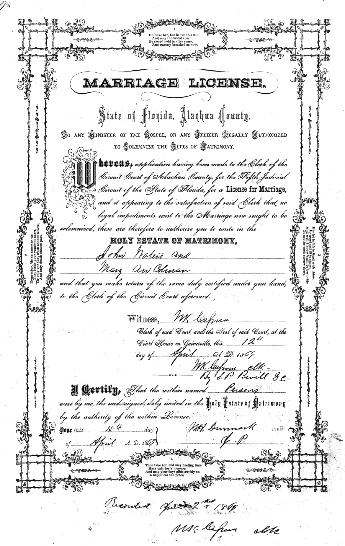 Marriage License A