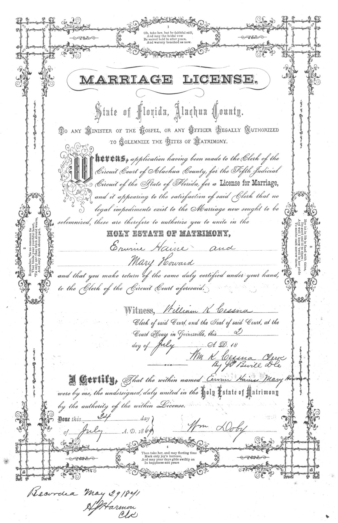 Marriage License A