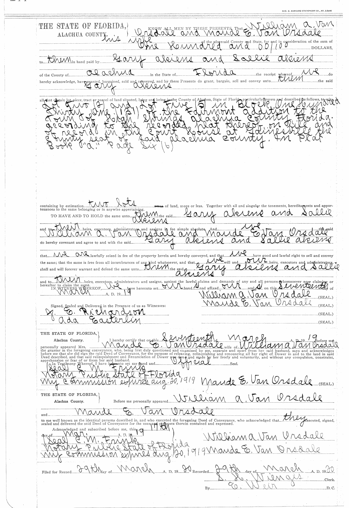 Deed Record 109