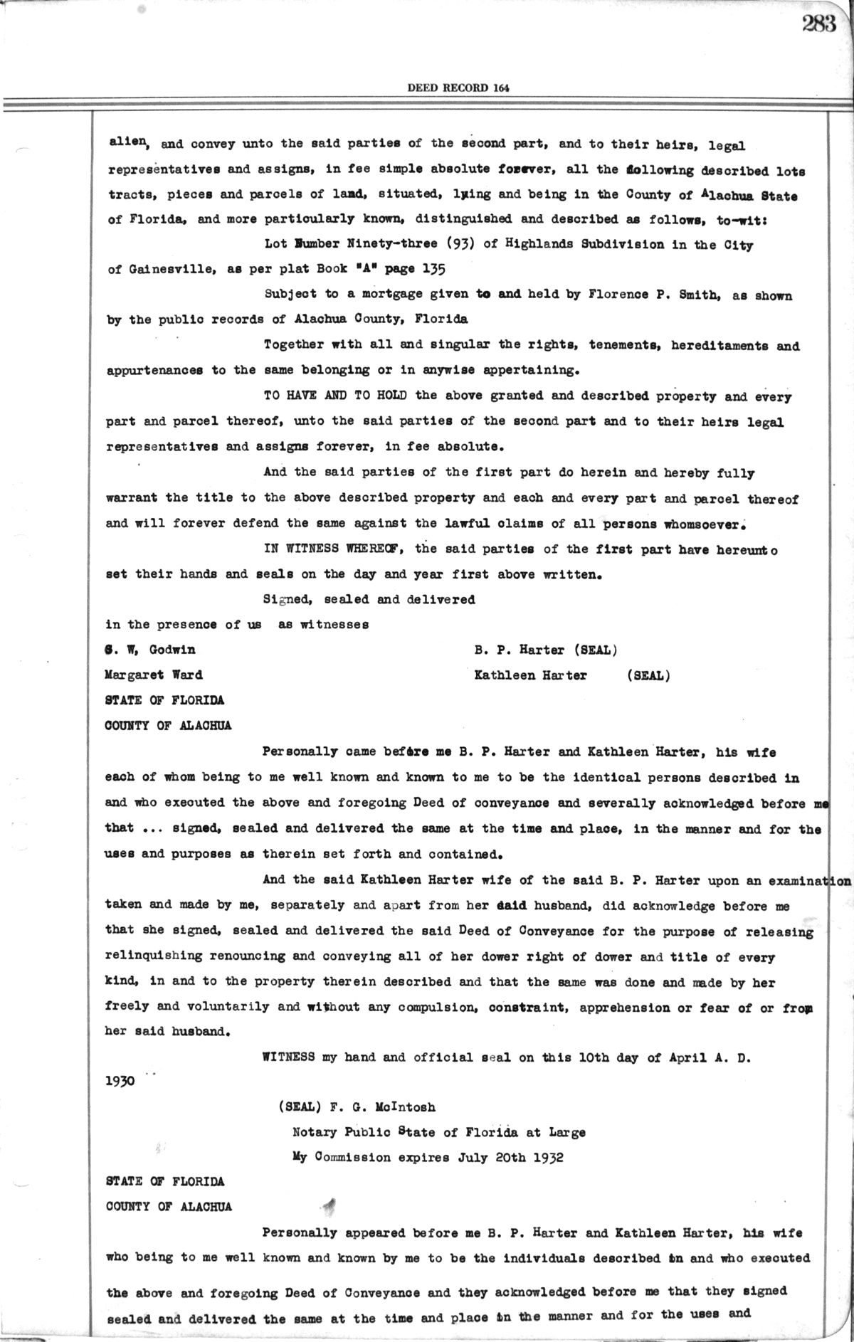 Deed Record 164